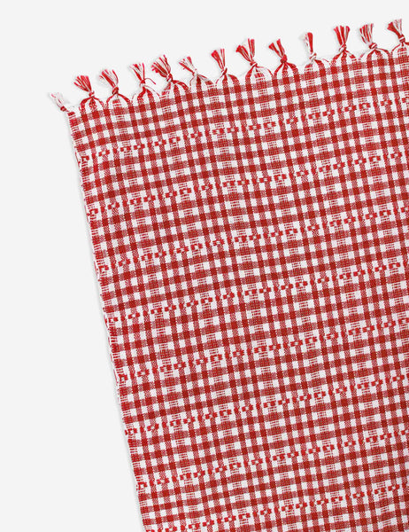Our festivities this year call for a maximalist approach, with bold silhouettes and vibrant prints introducing plenty of holiday cheer. Start by layering a classic print, like these Heather Taylor Home Soho Tablecloth and Napkins. Handwoven from cotton, they offer the timeless appeal of a check pattern in a warm red palette. It's the perfect base to layer on all your plates, glassware, and accents.