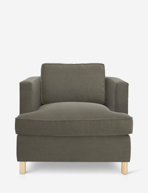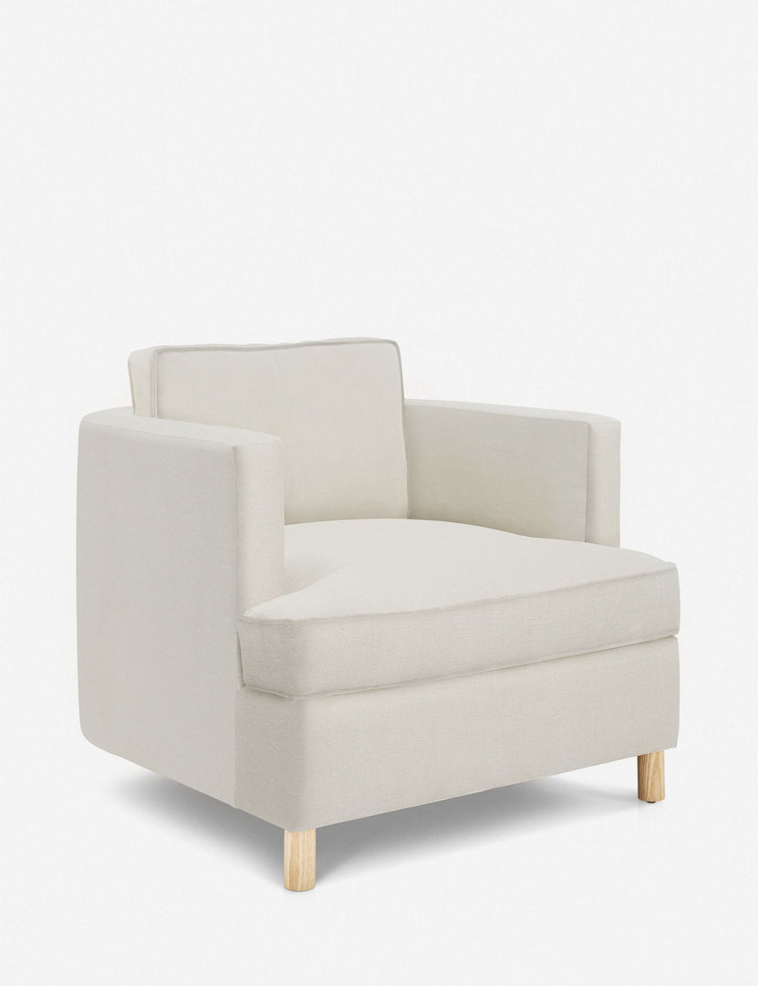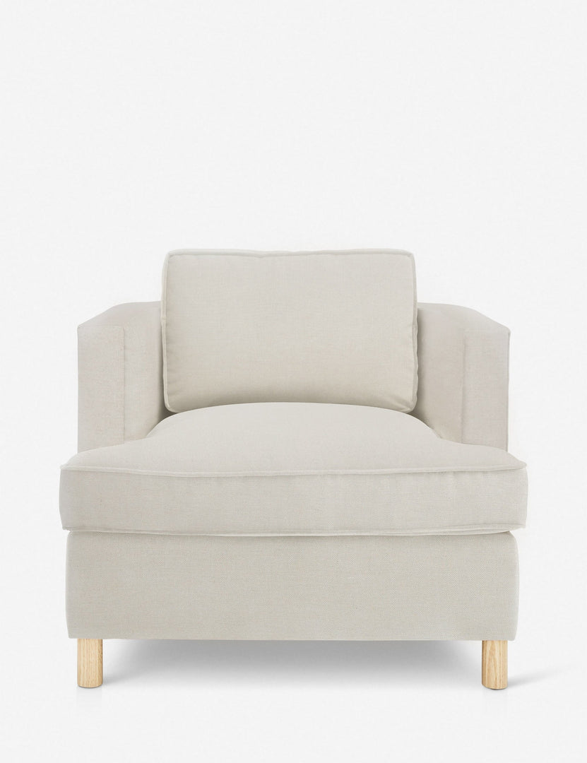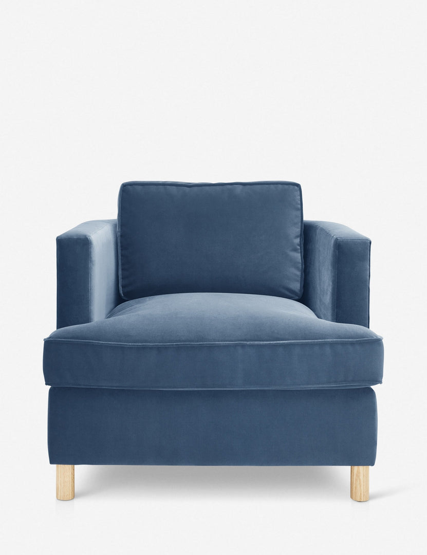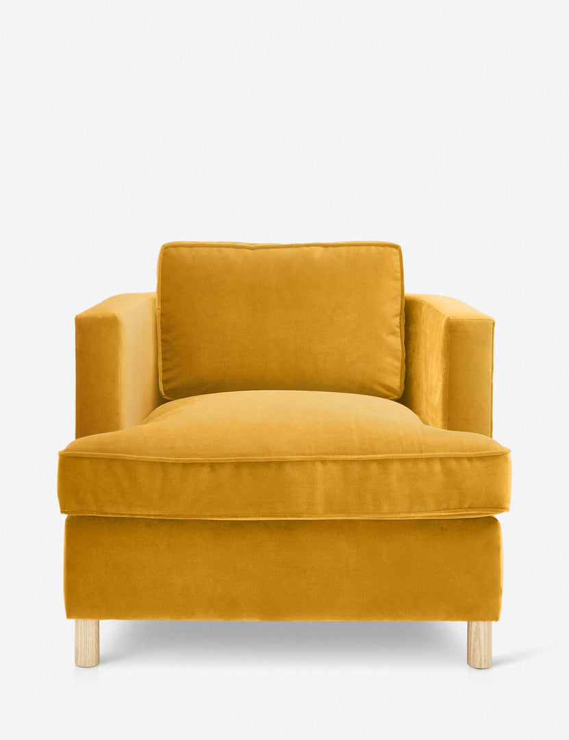 From the exclusive Ginny Macdonald collection for Lulu and Georgia, this armchair combines classic comfort with polished tailoring. Featuring a curved back and plush, oversized cushions, it adds an elevated yet transitional look to your living room seating. Inspired by Ginny's English heritage and handmade in Los Angeles, each piece in the collection fuses her British roots with her California lifestyle.