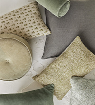 Always mind the material when shopping online. We've already noted the advantages of mixing textures, but it's also worth considering what each specific material brings to the table—or sofa—beyond texture. Linen pillows offer a versatile natural fiber that is strong, easy to clean, and only gets softer over time. Something like our Charlotte Velvet Pillow is an excellent choice for a home with a pet because the tight weave and smooth pile are less prone to snagging. Always think about how a material will play in your home.