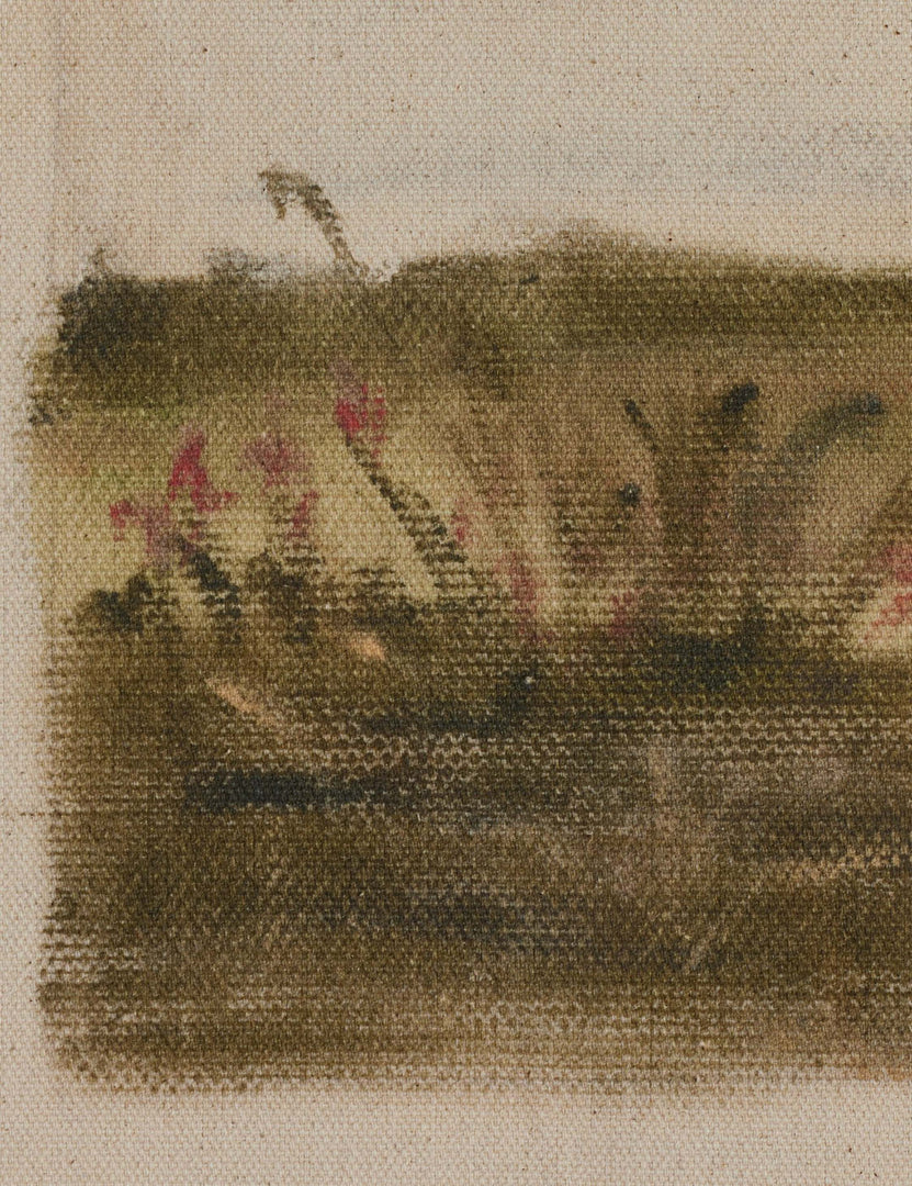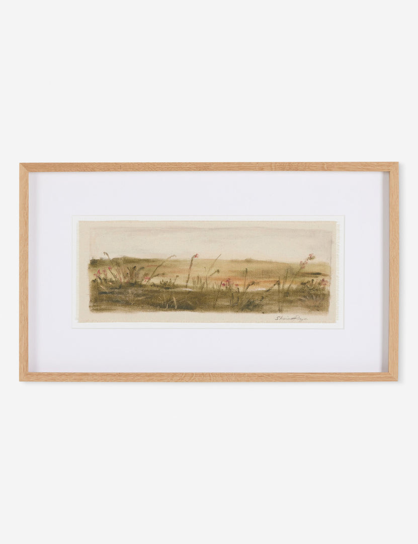 This piece features a pastoral landscape with soft brushstrokes and warm, sunlit tones. The wildflowers and grasses add a delicate charm, perfect for a timeless wall art curation. This artwork is float-mounted and matted in a panoramic frame, bringing a refined moment to your wall decor.