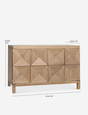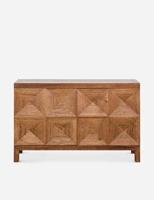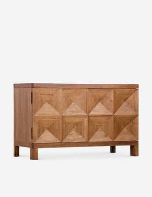 A sideboard buffet that's anything but two-dimensional. The concave diamond pattern gives the doors added dimension, while the walnut grain adds a welcome dose of organic warmth, an ideal sideboard cabinet for dining rooms and living rooms with a mid-century aesthetic.