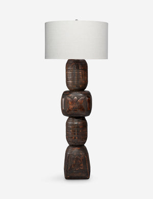 The Abeni lamp brings timeless craftsmanship to modern lighting. The base is made with chunks of mango wood, selected by hand, and carved by local artisans in the Naga region of India. Whether your space is richly collected or a minimalist edit grounded in natural texture, this floor lamp will layer warmth and character into your design.