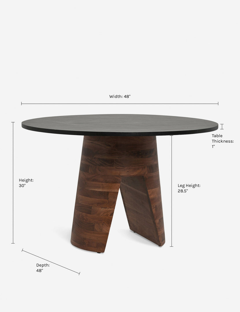 The unique profile of this round dining table offers an eye-catching focal point that is constructed from slabs of acacia wood for a richly layered woodgrain texture. Style this table with some rough-hewn dining chairs and sculptural accents for a dining room that strikes a perfect moody aesthetic.