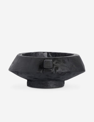 Rich in textural appeal, the Alama modern bowl is the perfect catch-all, delivering depth and artistry with an asymmetric silhouette and a deep black finish. Crafted from solid reclaimed wood, it offers a touch of industrial character in a modern living space.