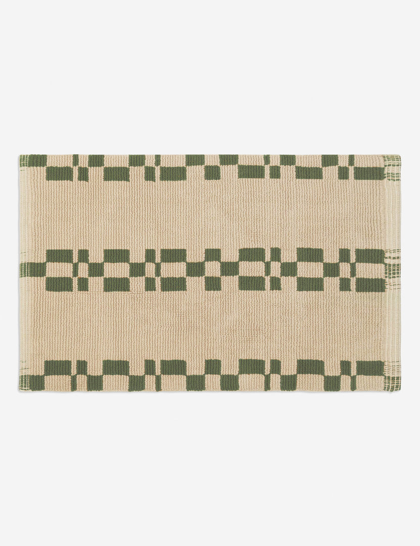 Morrow Soft Goods brings sustainability to beauty, creating lasting products with a mindful approach inspired by the colors, patterns, and textures of nature. This handmade bath mat features a geometric design that will ground your bathroom, kitchen, or utility room with a chic feel. The tight cotton loops are smooth to the touch but absorbent and fast-drying.