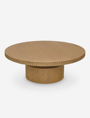 The Aliso coffee table pairs fluted detailing with a sculptural poise that feels refined and modern. With its stacked cylinder base and oak-clad top, this round coffee table strikes a balanced profile that almost seems to float. We love this coffee table for anchoring your space with quiet impact.