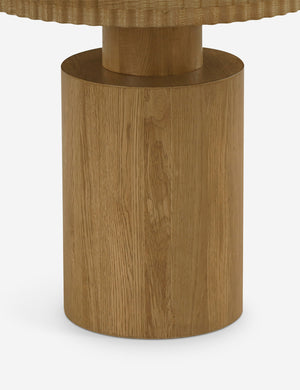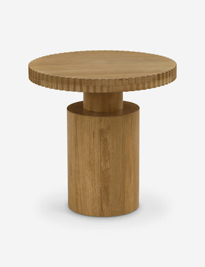 The Aliso side table pairs fluted detailing with a sculptural poise that feels refined and modern. The oak grain and round top layer texture and form in a compact design. Style it as a living room end table or bedside accent for a warm, tactile finish.