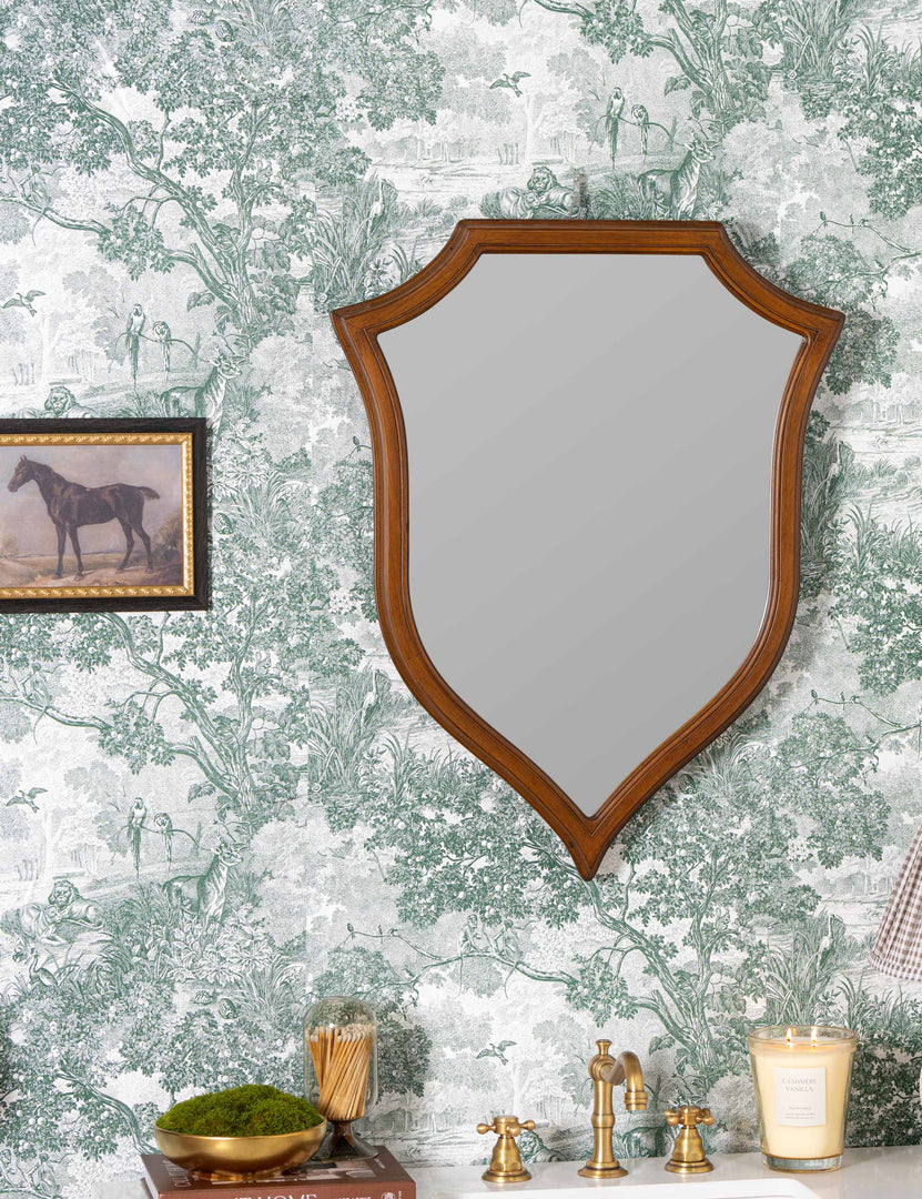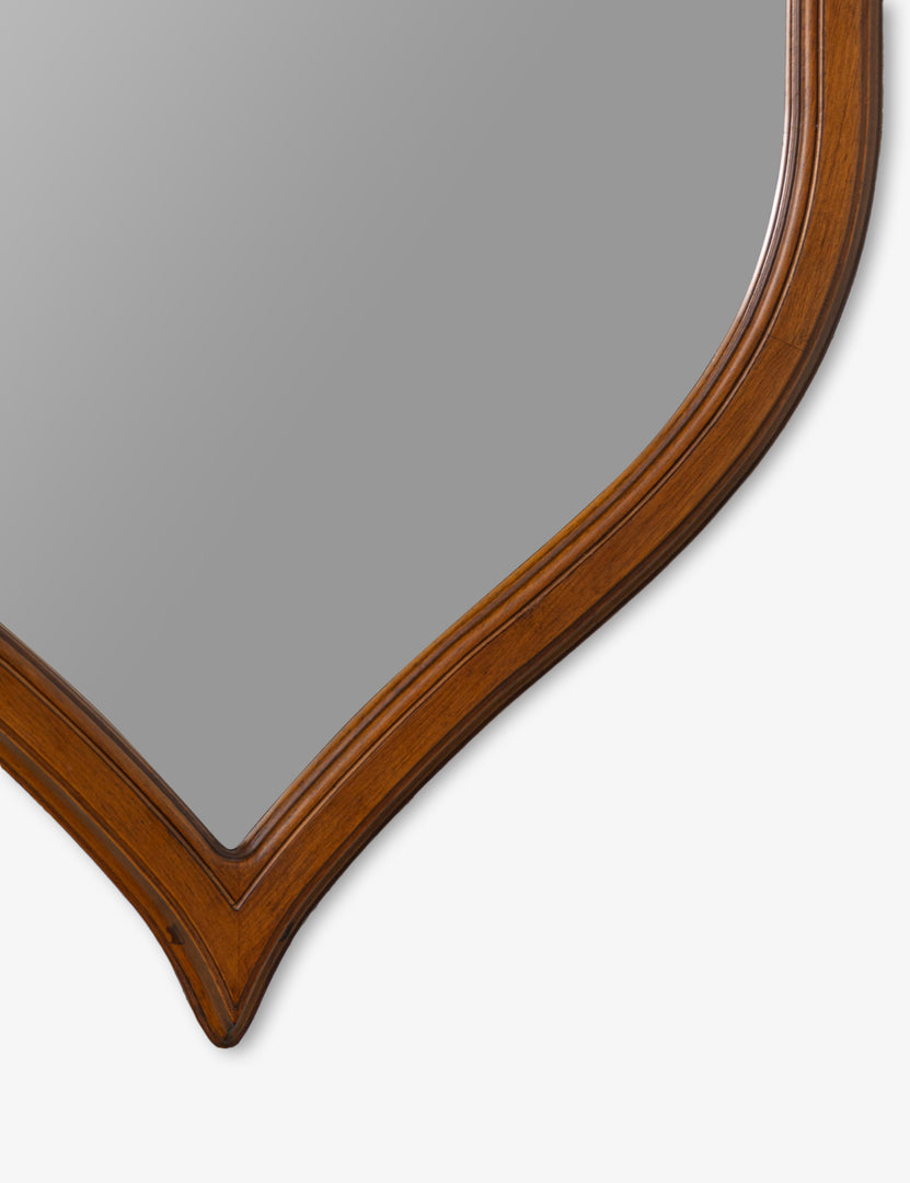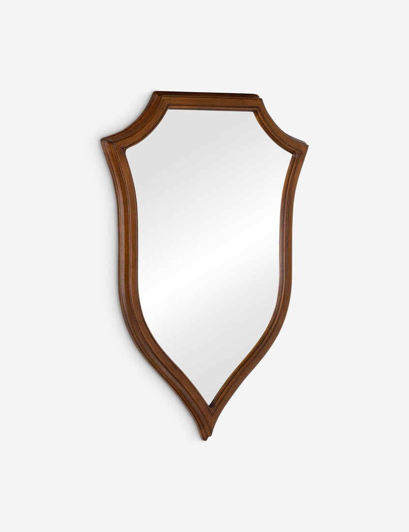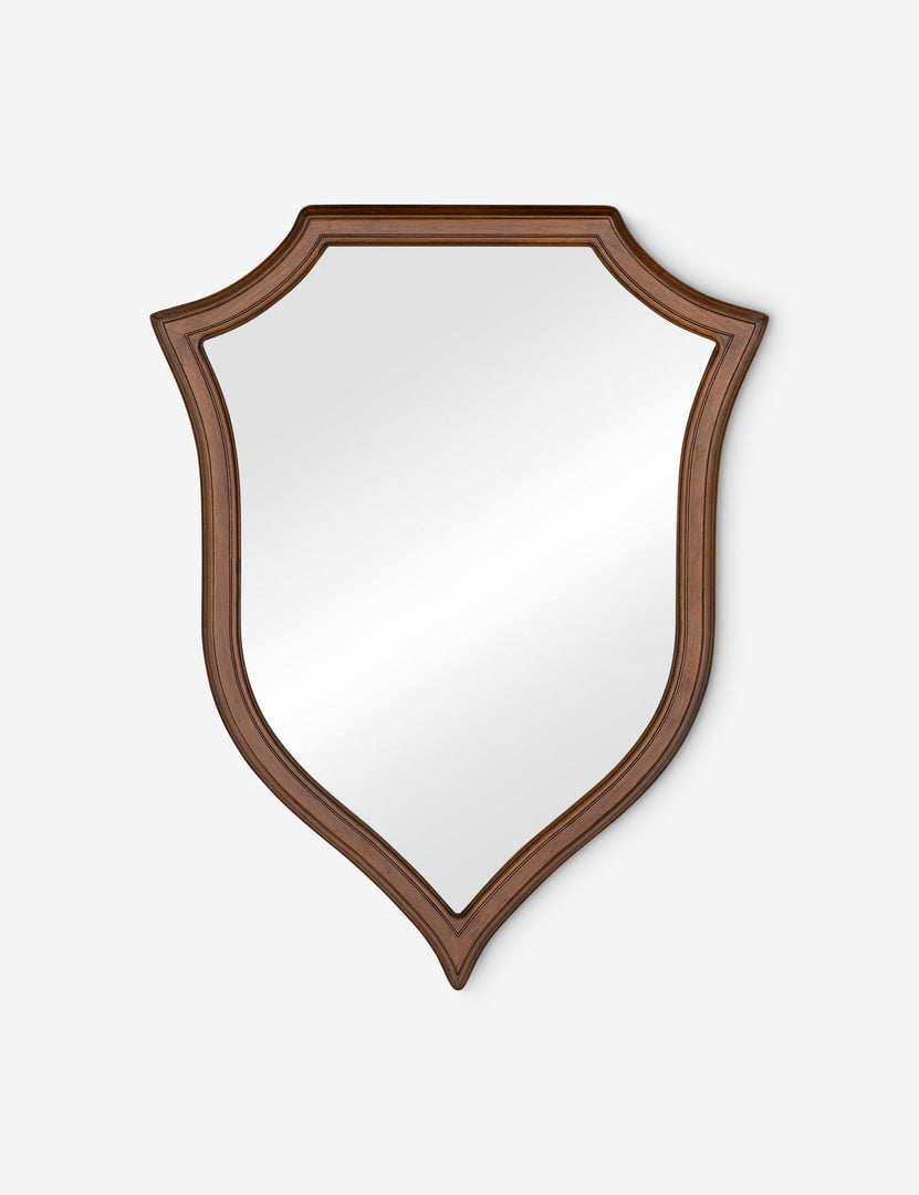 The Allred mirror offers a chic take on the classic shield shape with rich mahogany tones and graceful contours. Compact and polished, this accent mirror adds a touch of charm to any space, from entryway to powder room.