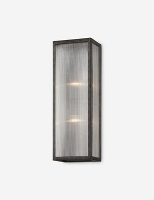 Taking a page from the Art Deco style book, this wall-mounted sconce features fluted glass for subtle vintage charm. Clean lines and a sleek rectangular shape ensure it easily pairs with modern exteriors as well.