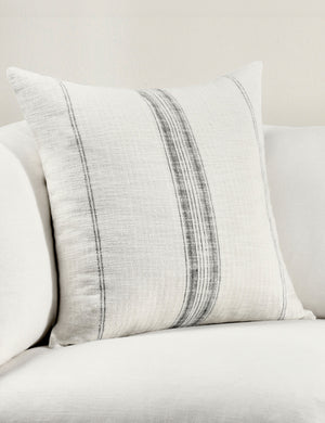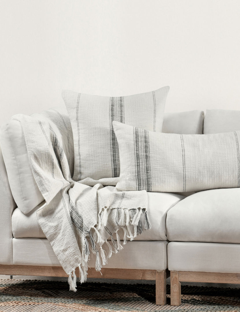 Tailored meets casual in this modern throw pillow, bringing stylish comfort to a sofa or armchair. The accent pillow features an ivory color with on-trend gray stripes that alternate thick and thin to create an understated pattern to complement transitional decor.