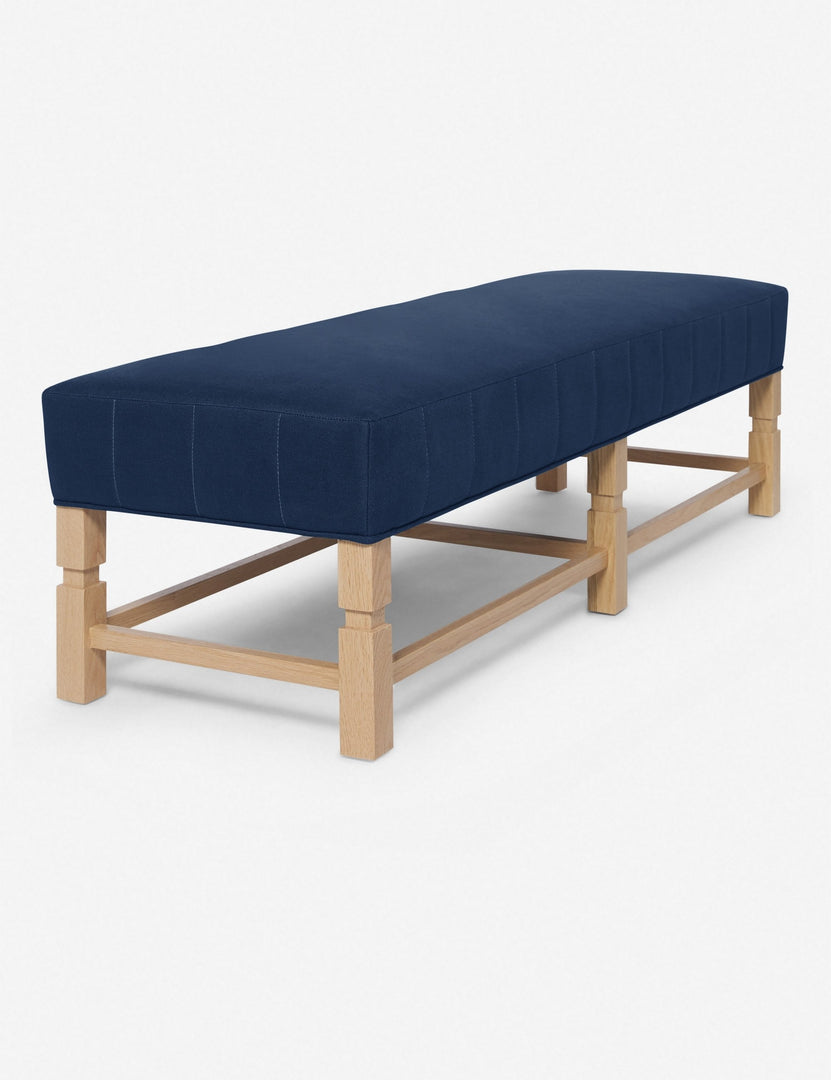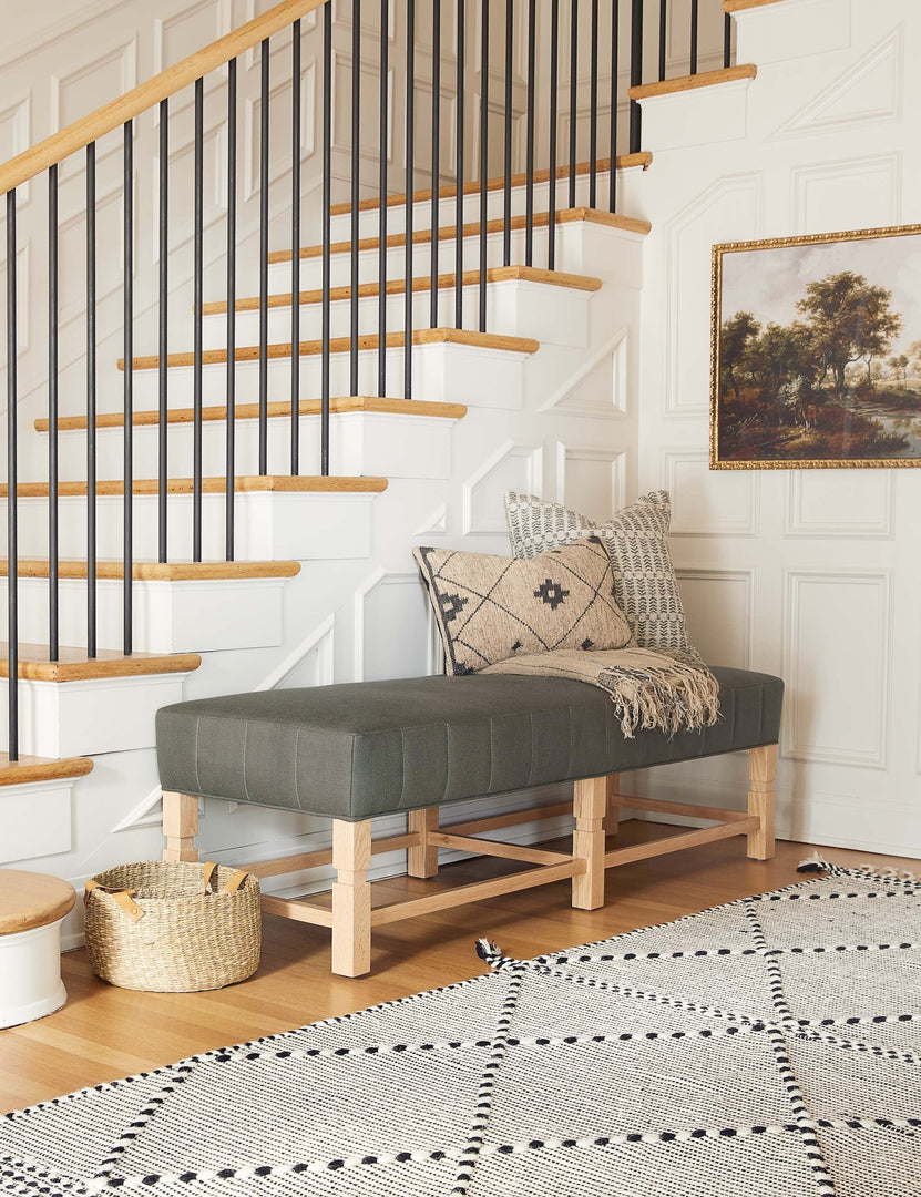 Combining tailored style and classic materials, this upholstered bench is the epitome of timeless comfort. From the exclusive Ginny Macdonald collection for Lulu and Georgia, this piece features carved detailing on the frame and vertical channeling around the cushion. Inspired by Ginny's English heritage and handmade in Los Angeles, each piece in the collection fuses her British roots with her California lifestyle.