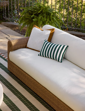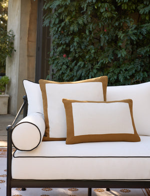 Add a splash of color to your patio or terrace with our Amica throw pillow. The antique white center augments the colorful border, creating a bright point of interest in your curation. We love this pillow for a relaxed curation that invites sophistication with an effortless touch.