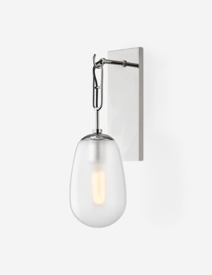 This sconce light's streamlined design still offers a lot of visual interest with its unique details. Suspended from a modern chain design and featuring an elongated glass shade, this wall sconce adds a refined yet dynamic touch. Style it in an entry, powder bath, or hallway, or pair two together to bookend a bed or sofa.