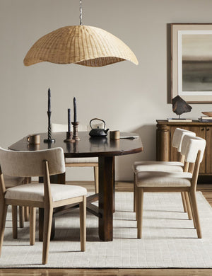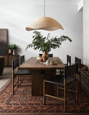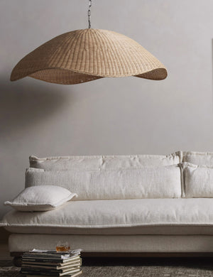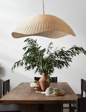 Create textural impact overhead with this oversized woven pendant light. The handwoven rattan shade draws an organic silhouette that catches the eye for statement appeal. This pendant is perfect for a cozy dining nook or a stylishly casual lounge.