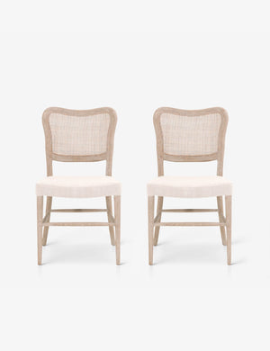 With a classic pairing of wood grain and cane, these dining chairs are a stylish addition to your table. An upholstered seat finishes the shaped frame with comfort and elegance. These dining chairs are sold as a set of two.