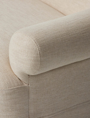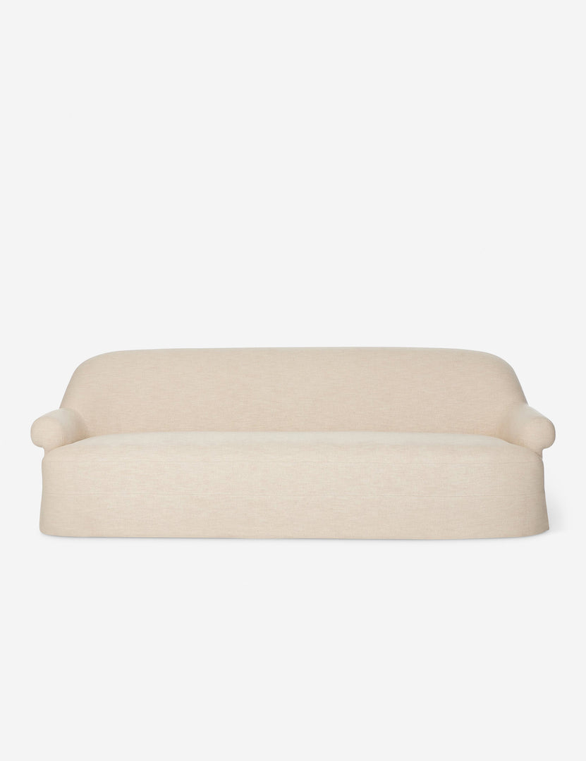 Four Hands brings their exceptional craftsmanship to a timeless collection rooted in Amber Lewis' perennial California style. The Arden sofa invites you into plush comfort with its wide rolled arms, high back, and extended couch seat. A fixed cotton-linen blend slipcover completes this large sofa with a laid-back look and feel.