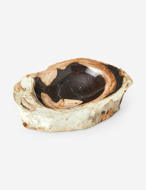 The Arriaga bowl offers a functional touch with statement appeal. Petrified wood layers a dramatic natural texture into any curation, and this handcrafted piece is the perfect way to bring the look home. The material is made from minerals forming around fallen wood, making each bowl a truly unique piece of art.
