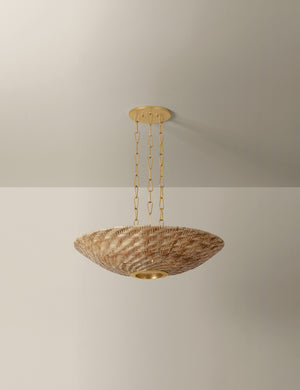 Artero pairs natural rattan texture with vintage-inspired hardware for a look that's grounded yet refined. A diagonal wicker weave brings rich dimension and warmth to this woven pendant light. Style it over a dining nook, bar, or breakfast table for organic charm.