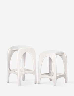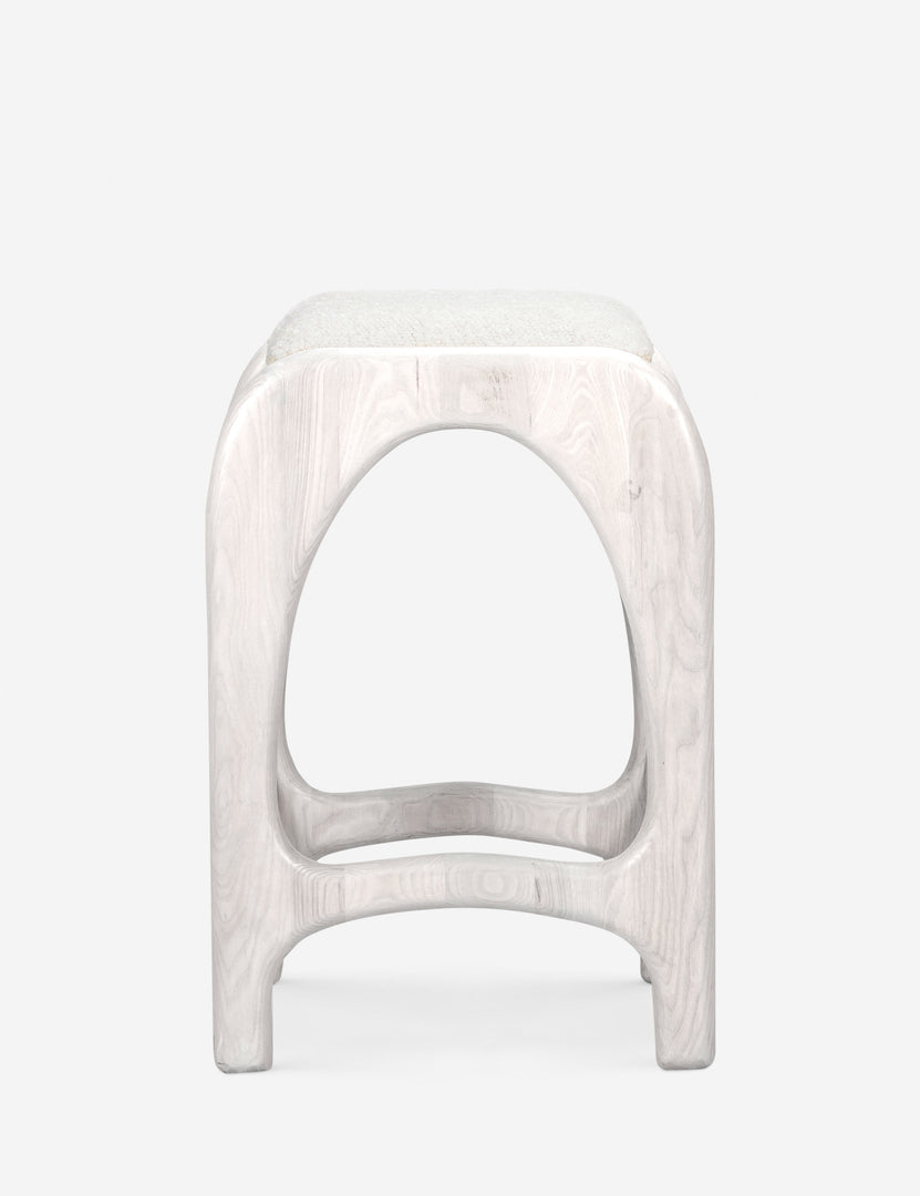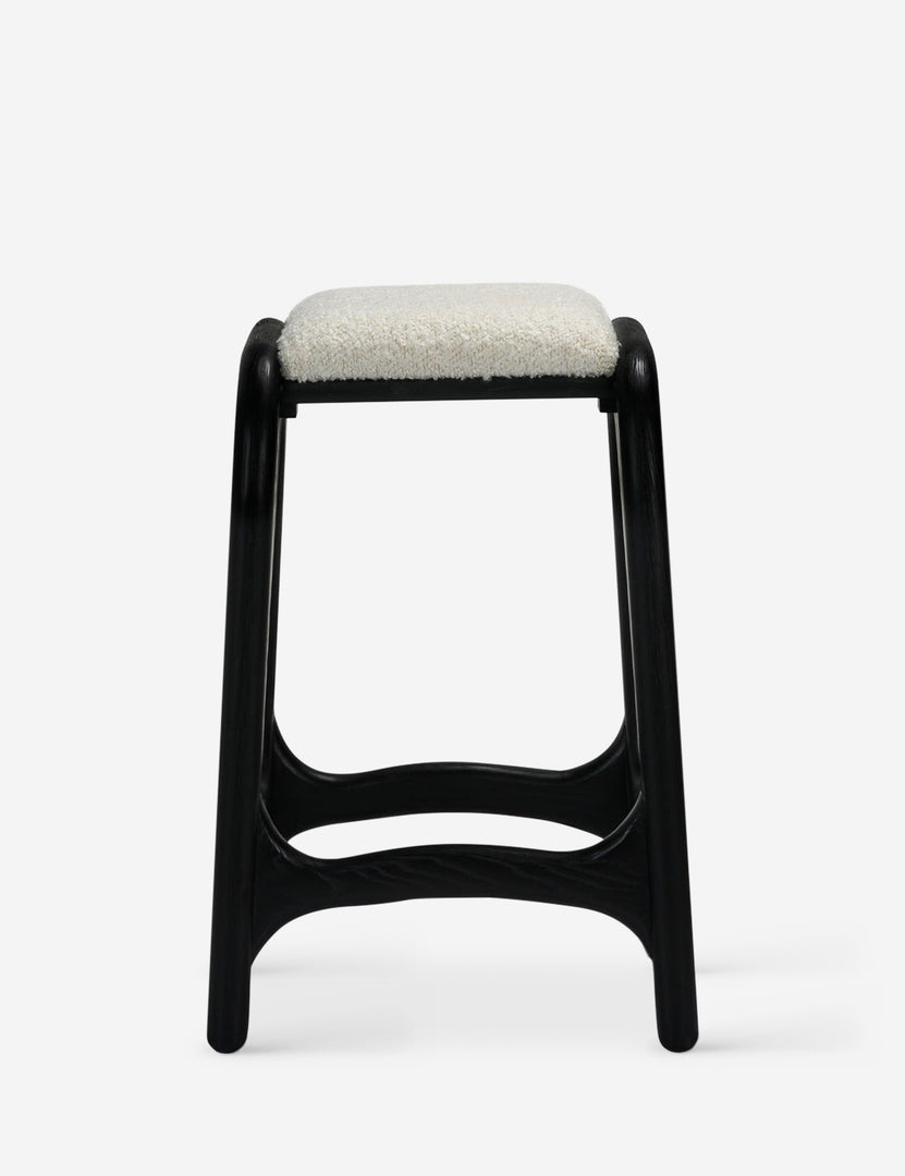 Architectural lines and rounded edges offer this ash stool a soft, rustic appeal. Textural upholstery offers an inviting touch to this versatile seat, whether styled as a kitchen stool or floated in a dynamic space.