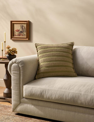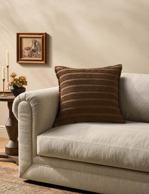 Amber Lewis brings her California cool style to Loloi's quality textiles in this striking line of throw pillows. The Aspyn pillow's textured stripes and earthy palette add easy dimension to any setting. It's a grounded accent that balances comfort with effortless style.