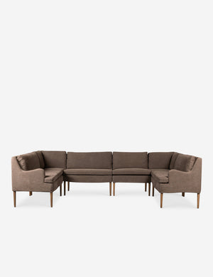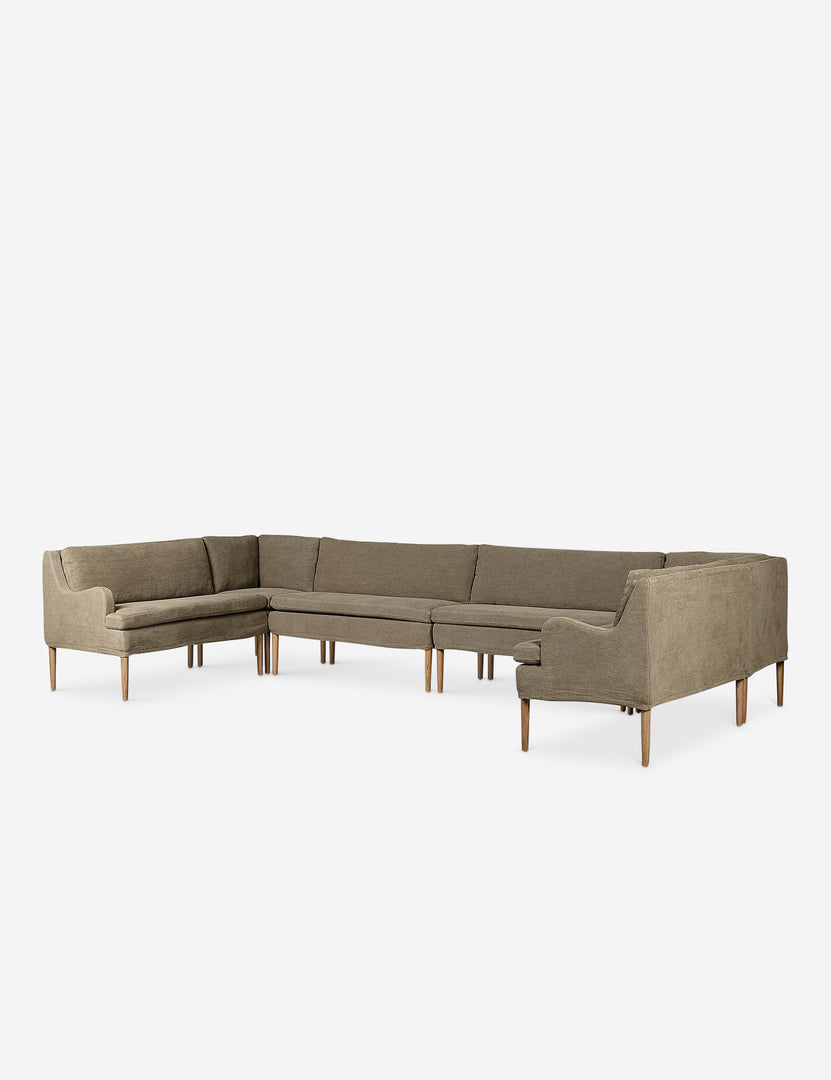 Four Hands brings their exceptional craftsmanship to a timeless collection rooted in Amber Lewis' perennial California style. Elegant sloping arms create a sense of movement in this banquet, offering a plush bench seat and sleek silhouette. Its inviting form pairs with rounded lines to create a luxurious bench seat for your kitchen or dining nook.
