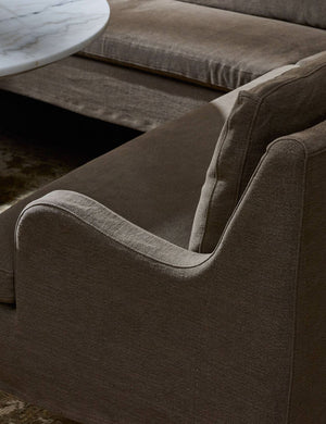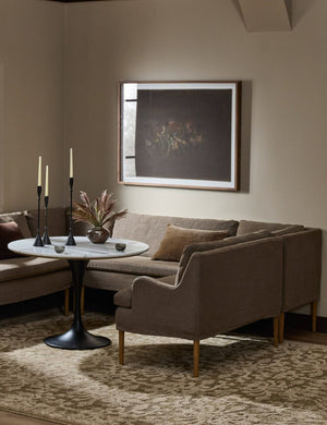 Four Hands brings their exceptional craftsmanship to a timeless collection rooted in Amber Lewis' perennial California style. Elegant sloping arms create a sense of movement in this banquet, offering a plush bench seat and sleek silhouette. Its inviting form pairs with rounded lines to create a luxurious bench seat for your kitchen or dining nook.