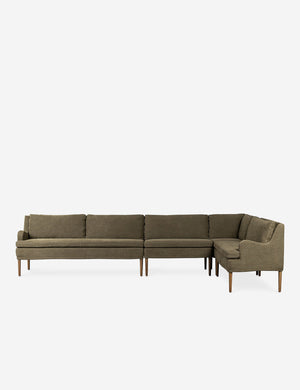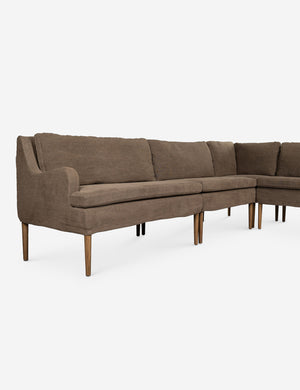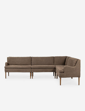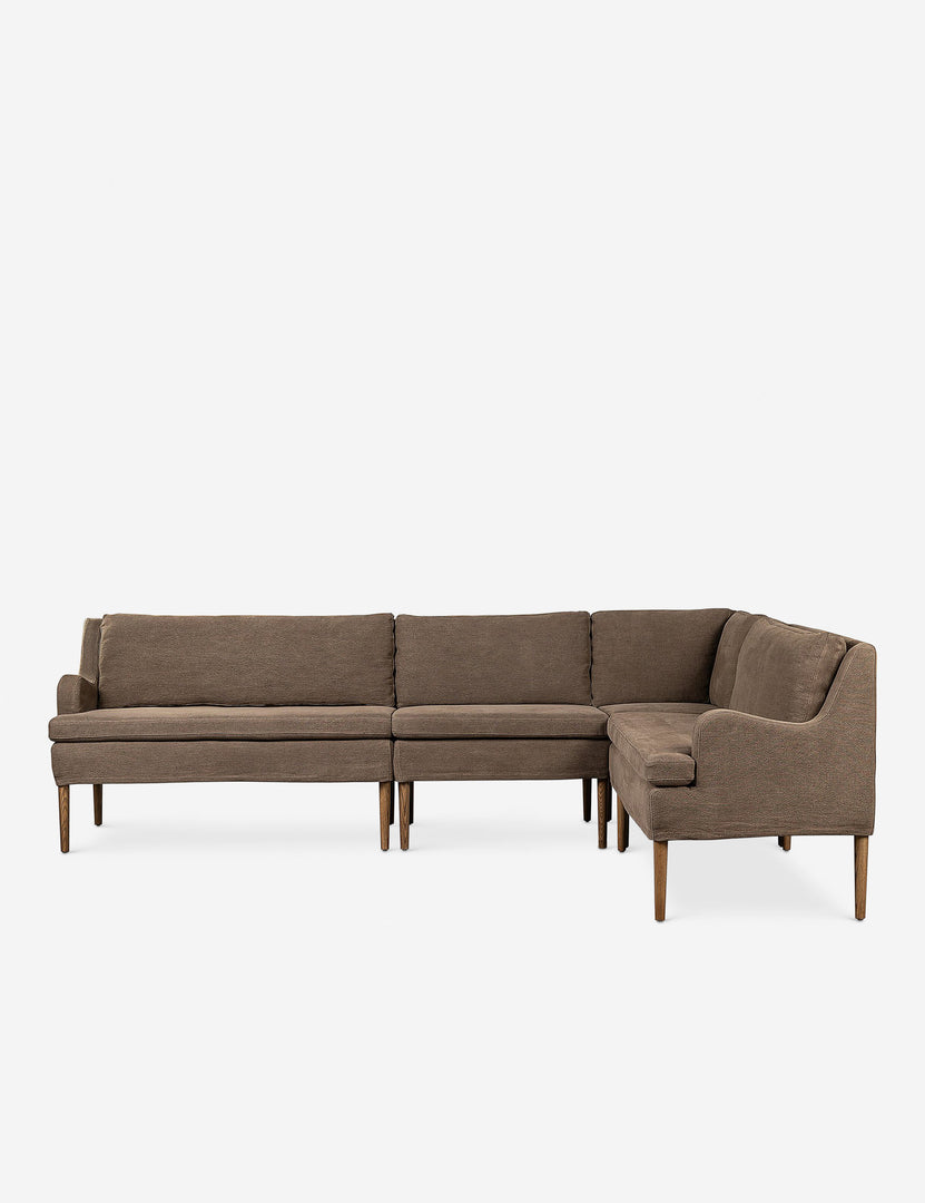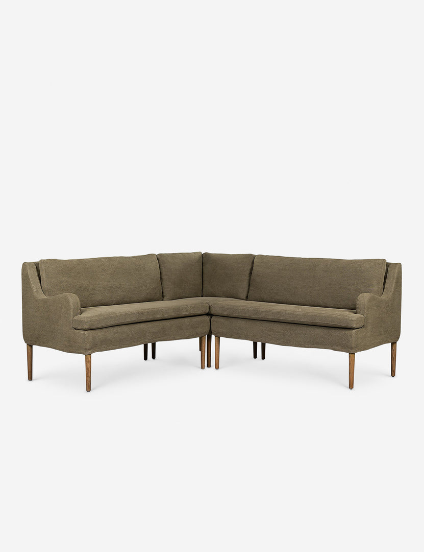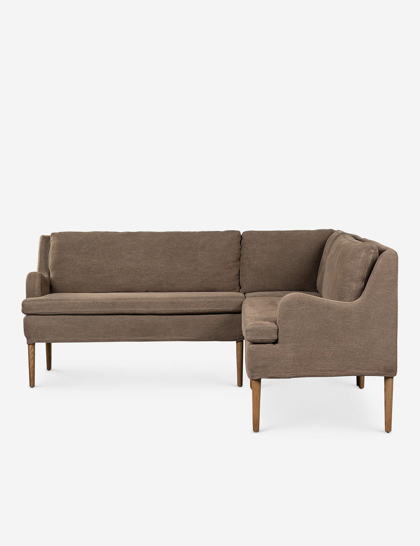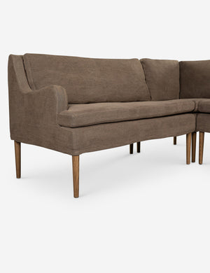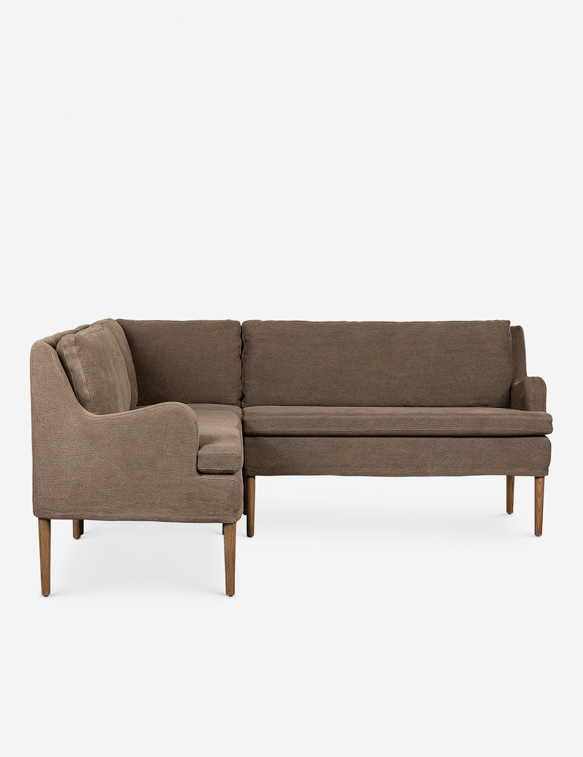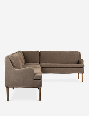 Four Hands brings their exceptional craftsmanship to a timeless collection rooted in Amber Lewis' perennial California style. Elegant sloping arms create a sense of movement in this banquet, offering a plush bench seat and sleek silhouette. Its inviting form pairs with rounded lines to create a luxurious bench seat for your kitchen or dining nook.