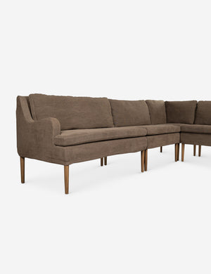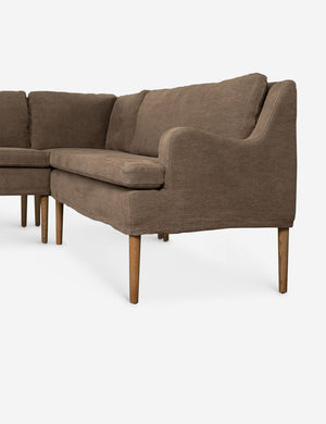 Four Hands brings their exceptional craftsmanship to a timeless collection rooted in Amber Lewis' perennial California style. Elegant sloping arms create a sense of movement in this banquet, offering a plush bench seat and sleek silhouette. Its inviting form pairs with rounded lines to create a luxurious bench seat for your kitchen or dining nook.