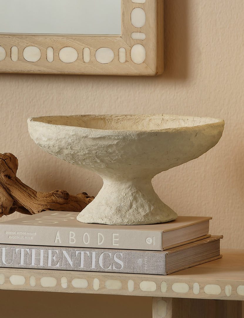 Create visual interest in your tabletop curation with the Aviv bowl. Its classic silhouette is refreshed with a textural cotton mache construction that brings a grounding touch to any mix. Fill with dried flowers or small decor for a splash of color.