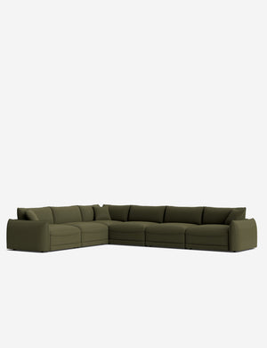 The Balmer corner sectional balances a clean-lined look with thick, overstuffed cushions for deep comfort. The result is a modern sectional sofa with a modular design and plenty of space for entertaining or spreading out. Bespoke upholstery lets you style the look for impact.
