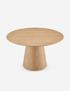 We love this wood dining table for its subtle sculptural allure and beautiful natural grain. The crisp, round tabletop is set on a tapered pedestal base, lending it a sleek silhouette perfect for intimate dining or a chic breakfast nook table.
