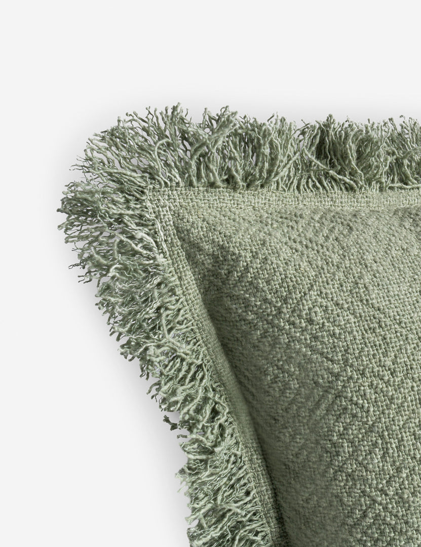 A timeless touch of comfort. This linen-blend throw pillow features a solid design with a feathery fringe that’s perfect for mixing soft texture into the room. Pair with patterned pillows for a look that’s layered and chic.