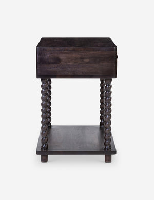 With ornate yet tailored lines, the Bea nightstand nods to tradition with its finely turned legs and rich wood finish. A sleek iron drawer pull adds contrast, with an open shelf below adding ample surface space. We love this modern nightstand for a practical touch of timeless style at your bedside.