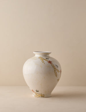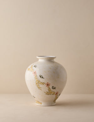 Heidi Caillier infuses this exclusive collection with all the warmth, pattern, and nostalgic details that define her celebrated interiors. The Bea vase features a floral motif that brings a delicate, storied charm to its classic silhouette. Style it with fresh stems or branches for an inviting centerpiece on a console, dining table, or entry vignette.