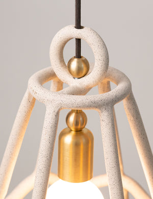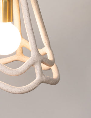 SIN is a Brooklyn-based brand that offers beautiful, handmade pieces designed with intention. In this unique pendant light, they recall the shapes of antique bells and lanterns with a thoroughly refined ceramic design. The pendant's open framing casts a subtle play of shadow and light to illuminate the room.