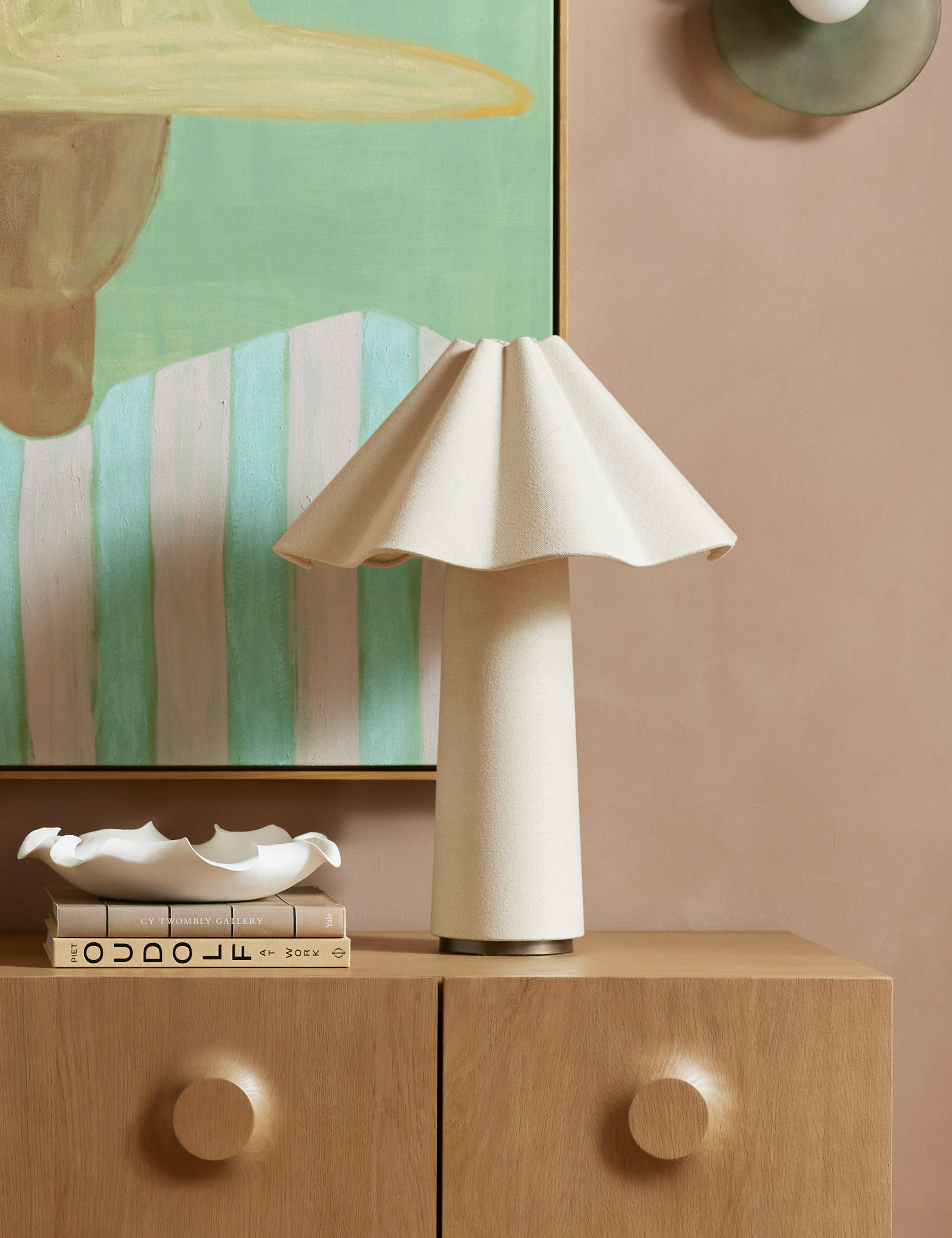 Lighting is part of the texture of your decor. With sculptural lines wrapped in fabric, this eye-catching lamp brings a grounding touch to the room. We love the dimension this table lamp brings to a modern curation.