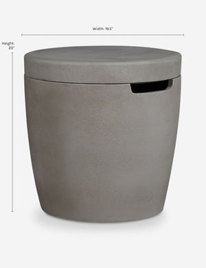 Complete your patio look with a concrete cover made to match your fire table or bowl. This concrete cover discretely conceals a 20-pound propane tank and doubles in transforming your fire pit into an accent table, offering style and functionality to your outdoor lounge.