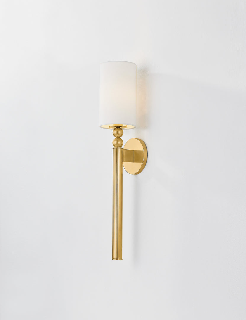 Bergier brings sleek sophistication to the classic torchiere sconce. Its elongated silhouette combines fine detailing with a slender drum shade, seamlessly blending modern elements with timeless design. This sconce makes a striking statement in multiples, whether flanking a doorway or lining a hallway.