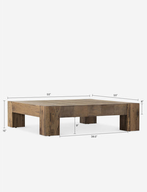 Chunky legs and dovetail joinery fashion this wood coffee table for rustic appeal. The distressed oak veneer creates a wormwood-like texture adding endless character to its elemental design. We love the versatility of this square coffee table for anchoring a farmhouse look or bringing natural texture into an industrial space.