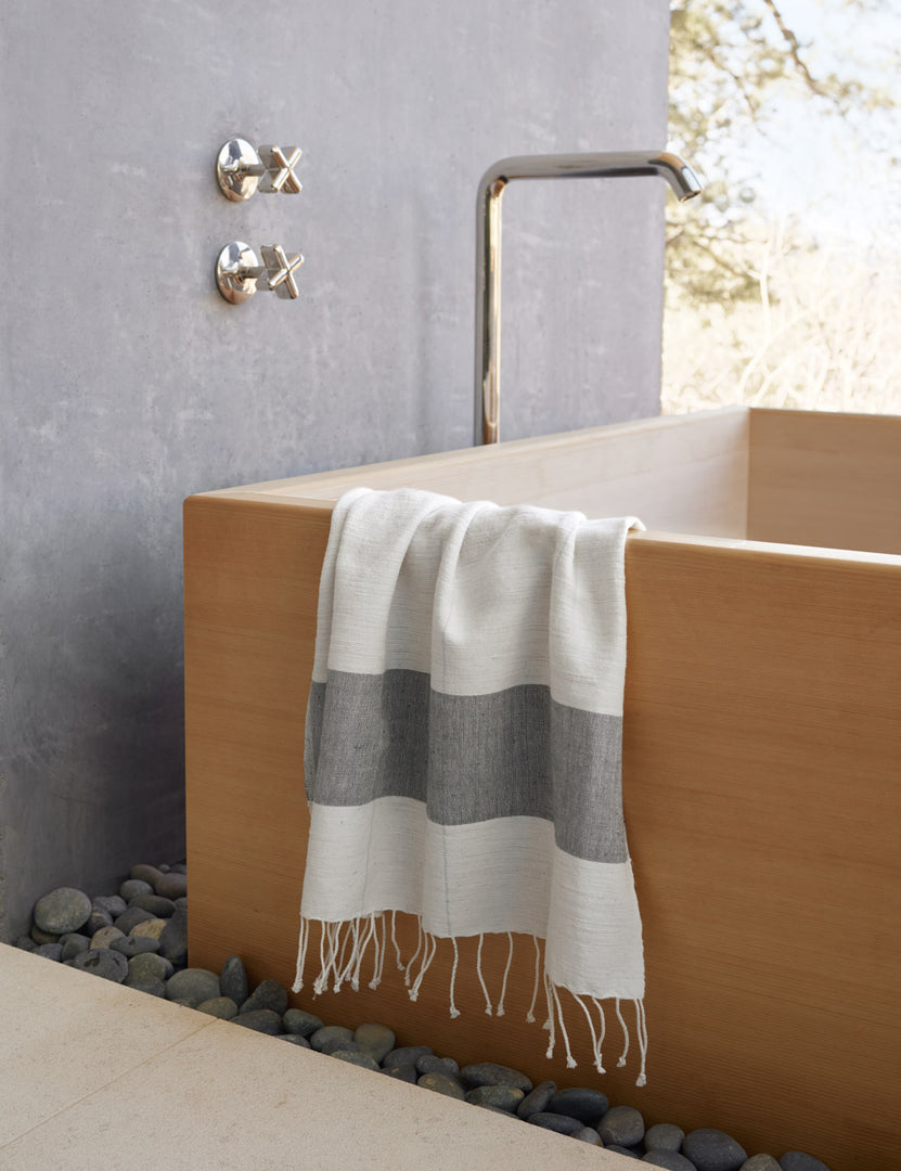 New York-based brand Bolé Road Textiles creates modern home accents inspired by, and lovingly hand-crafted in, Ethiopia. This hand towel is made with soft, absorbent cotton for a dash of style in your kitchen, bath, or powder room. We love the blissful balance of the two-tone design for a clean and chic feel.