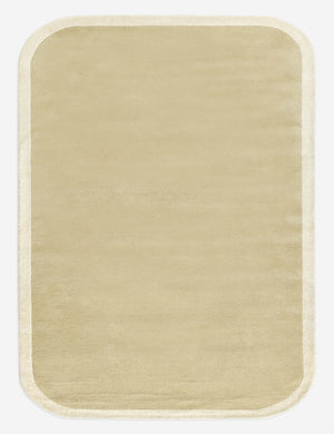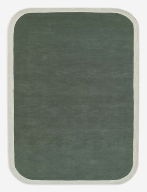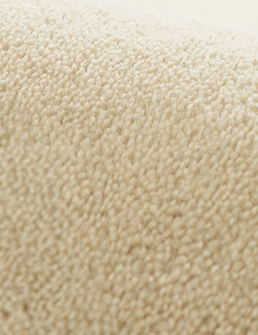The Boswell rug offers soft impact in the room. Its solid design is set off by a high-contrast border and rounded corners for an understated yet bold foundation. This hand-tufted rug features a thick wool pile for a plush, natural texture underfoot.