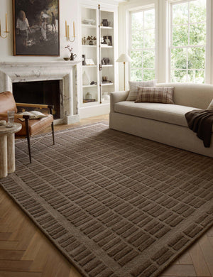 Soft texture meets fresh appeal in this signature rug collaboration from Chris Loves Julia and Loloi. This hand-tufted rug offers a tactile foundation with a tough woolen tread and subtle pattern underfoot. A tight, rectangular grid with a low border brings a grounding symmetry to the earthy hue of this design.