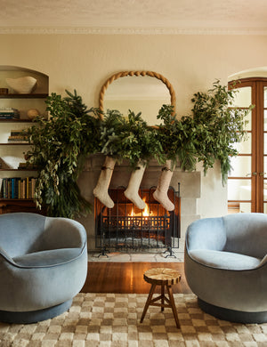In this stylish mirror, light oak provides natural grain texture with a twist. The braided wood frame is decorated with ball finals, bringing a chic look and feel to your mantel, dresser, or console table. This mantel mirror is from our exclusive Sarah Sherman Samuel collaboration and features all the trademarks of her warm, edited style.