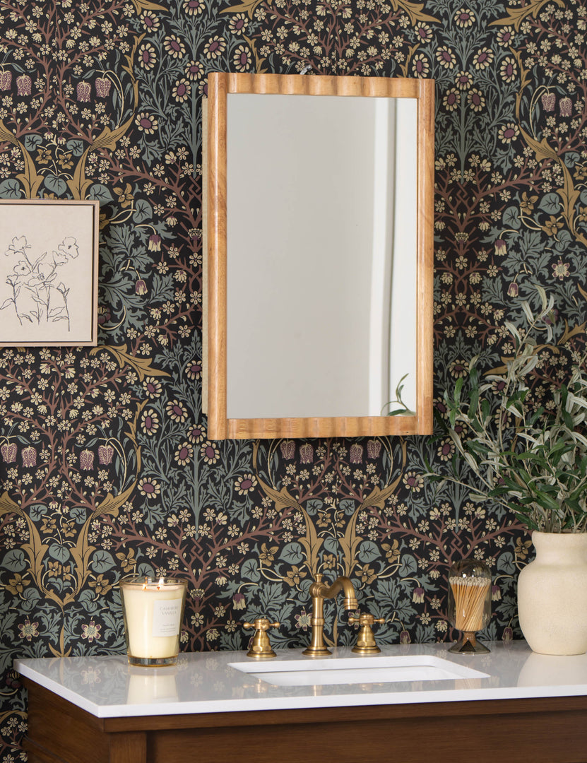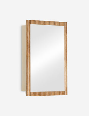 Rippled lines and natural wood grain give the Brannic medicine cabinet its refined edge. With a reversible door and storage inside, this piece brings warmth and function to your bath, proof that minimalism doesn't mean going without.