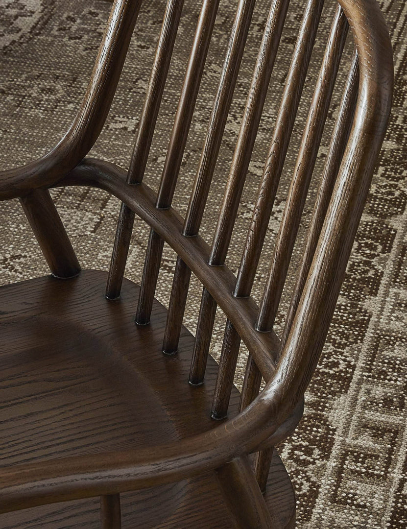Four Hands brings their exceptional craftsmanship to a timeless collection rooted in Amber Lewis' perennial California style. This fresh take on the classic Windsor dining chair features a tall spindle back that flows seamlessly into low, curving arms. This dining seat's airy frame offers traditional styling with a modern feel for transitional elegance.