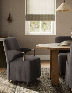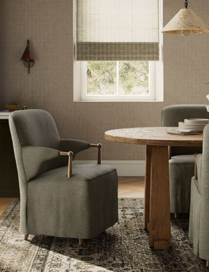 Four Hands brings their exceptional craftsmanship to a timeless collection rooted in Amber Lewis' perennial California style. A classic slipcover pairs with distressed oak in a modern dining chair that brings refined dimensionality to your table. Its tall back and plush seat create exceptional comfort for a dining room chair that combines the best of style and comfort.