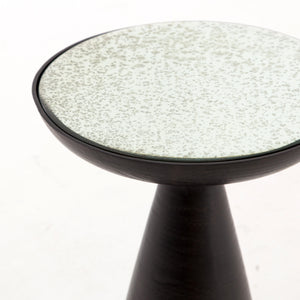 In a brushed bronze finish, this steadfast pedestal table has a retro vibe that pairs well with whimsical modern design. Finished with a mirrored ash glass top.