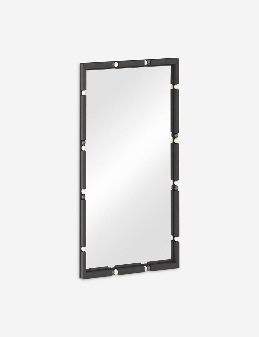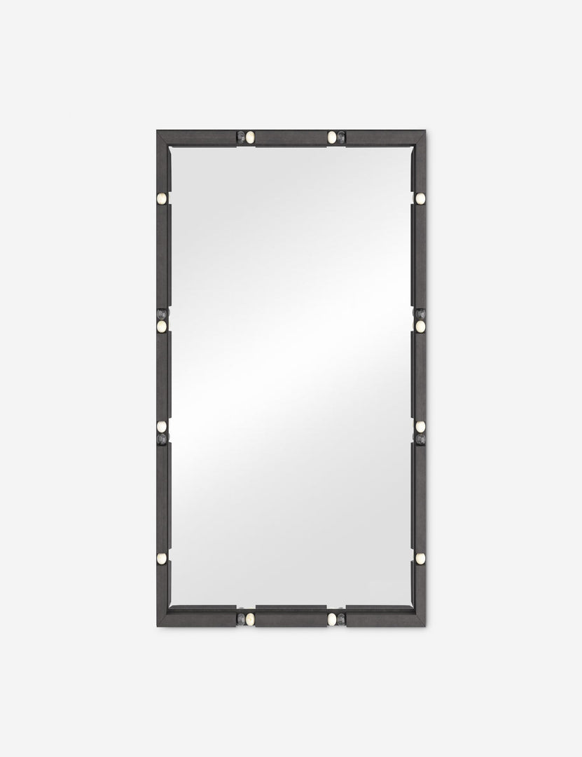 When it comes to styling accent mirrors, we love something chic and unique—the Brinkley mirror is tailor-made for the task. Contrasting pairs of marble balls sit in line with its black wood frame, offering texture and impact with an elegant mix of materials. You can mount this large wall mirror horizontally or vertically for a tone-setting statement in a modern space.