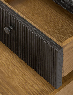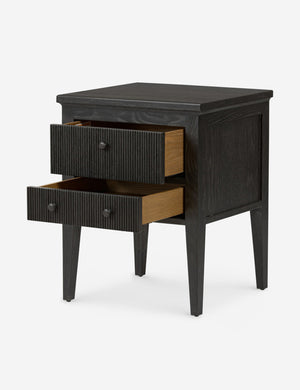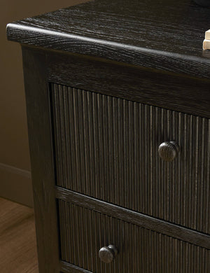 Four Hands brings their exceptional craftsmanship to a timeless collection rooted in Amber Lewis' perennial California style. Reeded details and inverse proportions bring engaging style to a wooden nightstand with two drawers. The larger top drawer and smaller bottom drawer add visual interest, while tapering legs create the perfect finishing touch for a bedside table with easy storage.