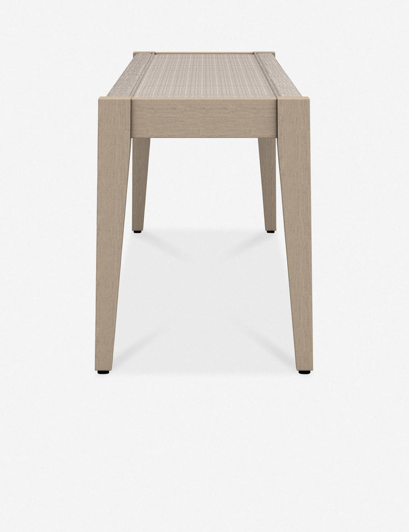 Style flexible seating for modern patios, balconies, and backyard oases. The Cadenza Dining Bench features a classic wooden frame with tapered legs and rope detailing. Whether providing extra room at the table or offering poolside seating, this bench is a dynamic addition to your outdoor decor.
